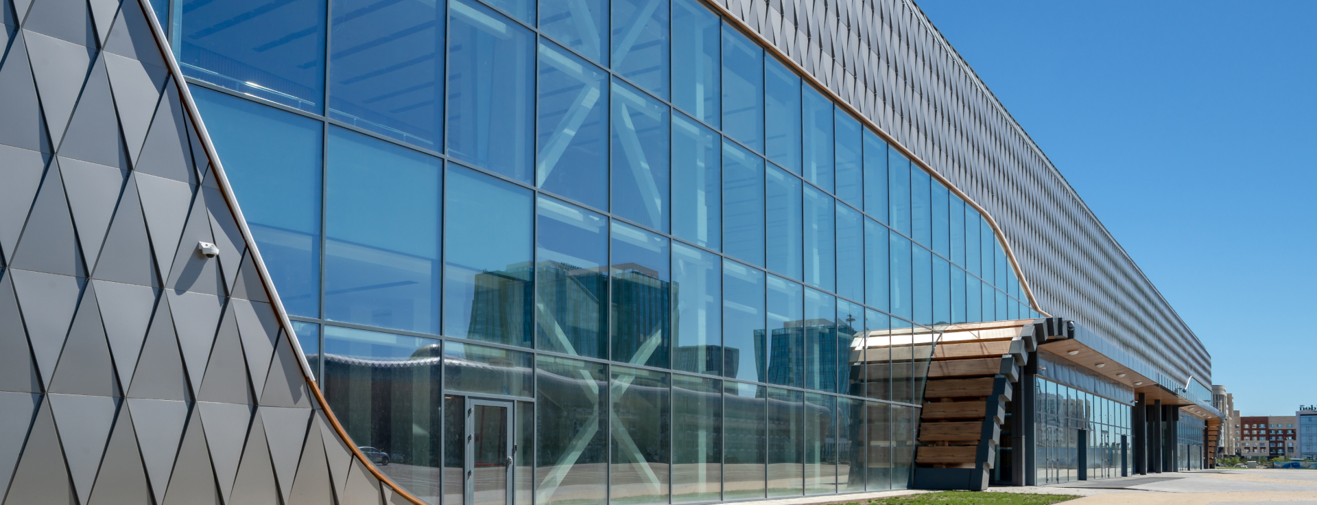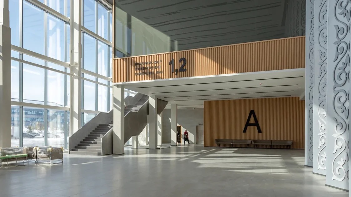 Congress Center — a modern multifunctional complex in Astana designed for hosting international forums, conferences, exhibitions, and cultural events. The building features stylish architecture and advanced technical facilities, making it one of the capital’s key venues for business and public events.